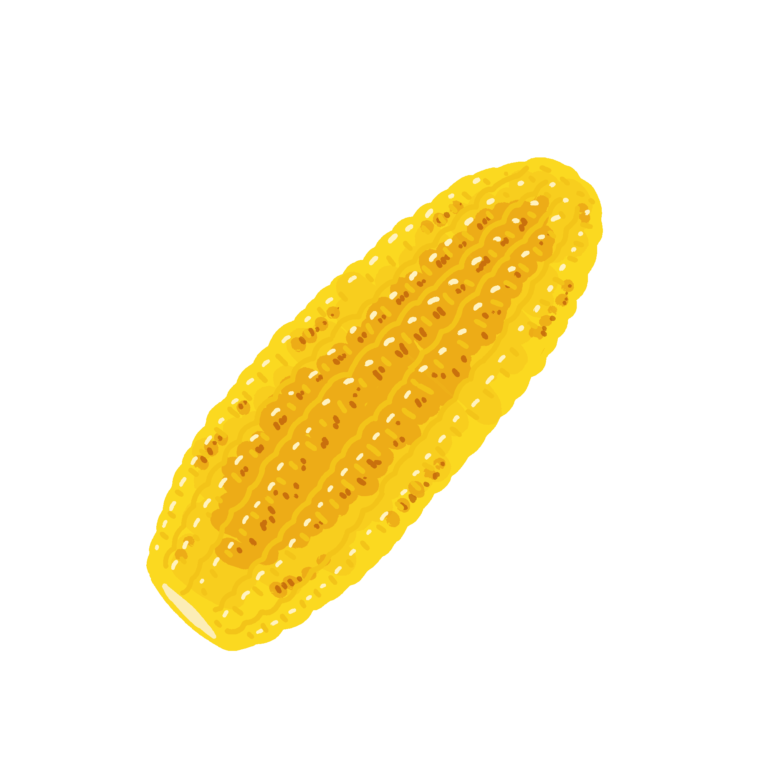 焼きとうもろこしの無料イラスト素材です。香ばしく焼き色がついたとうもろこしを描いたカラーイラストです。背景透過。商用利用可能です。夏祭りや縁日を題材にしたプ…
