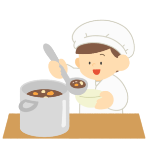 給食当番のフリーイラスト素材(白黒)
