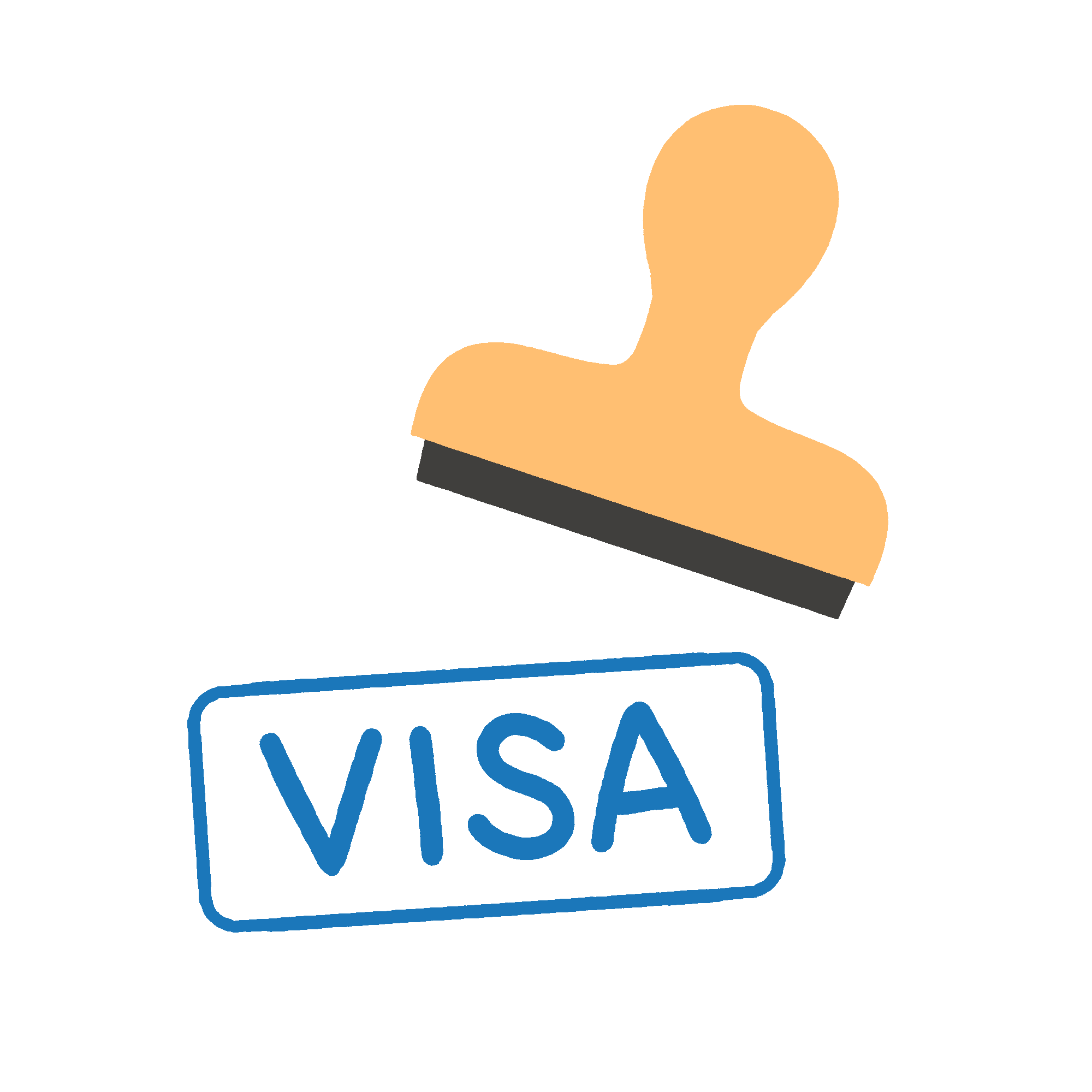 ビザ(査証)スタンプの無料イラスト素材です。パスポートに押された入国査証スタンプを描いており、国際交流・在留資格・出入国手続きをテーマにした自治体の多文化共生広報や、旅行・語学関連コンテンツの制作に活用できます。背景透過。商用利用可能です。