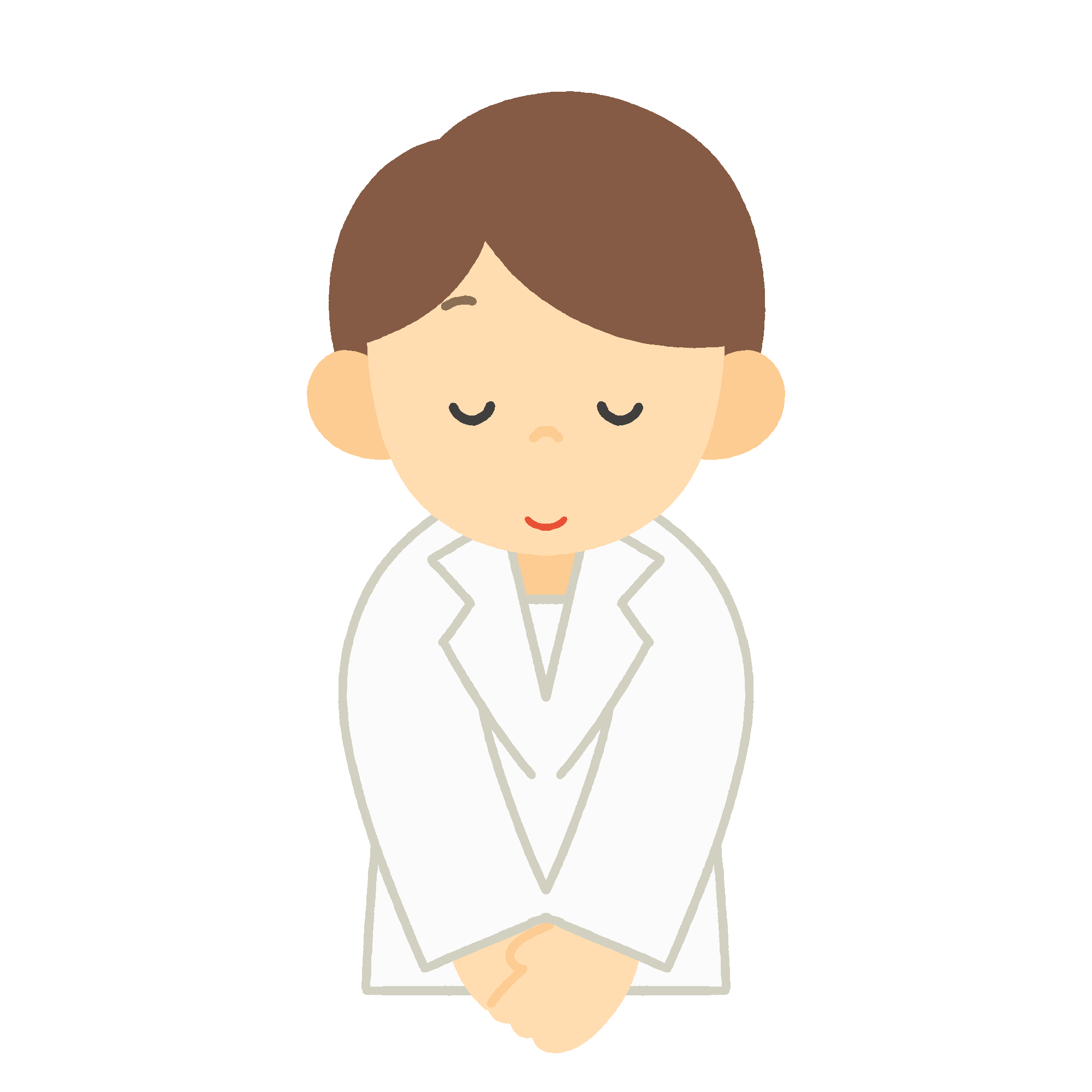 おじぎをする白衣姿の男性の無料イラスト素材です。医師・研究者・薬剤師などのあいさつ場面を表現したイラストとして、医療機関や製薬・研究機関の広報資料に最適です。白衣でお辞儀をする男性医療スタッフのイラストです。背景透過。商用利用可能です。