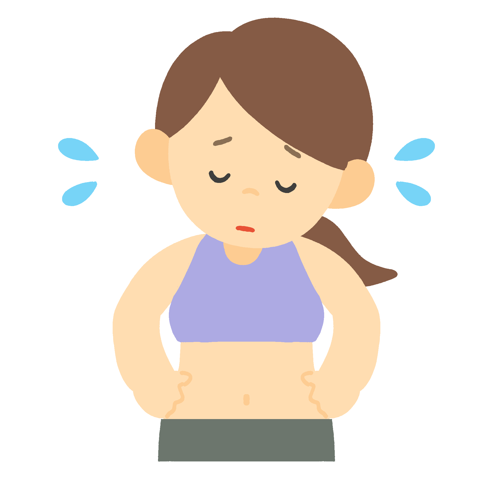 お腹のぜい肉を気にする女性の無料イラスト素材です。ぽっこりお腹や体型の変化を気にする女性の様子を描いており、ダイエット・メタボ対策・健康診断の案内など生活習慣病予防をテーマにした資料に最適です。背景透過。商用利用可能です。