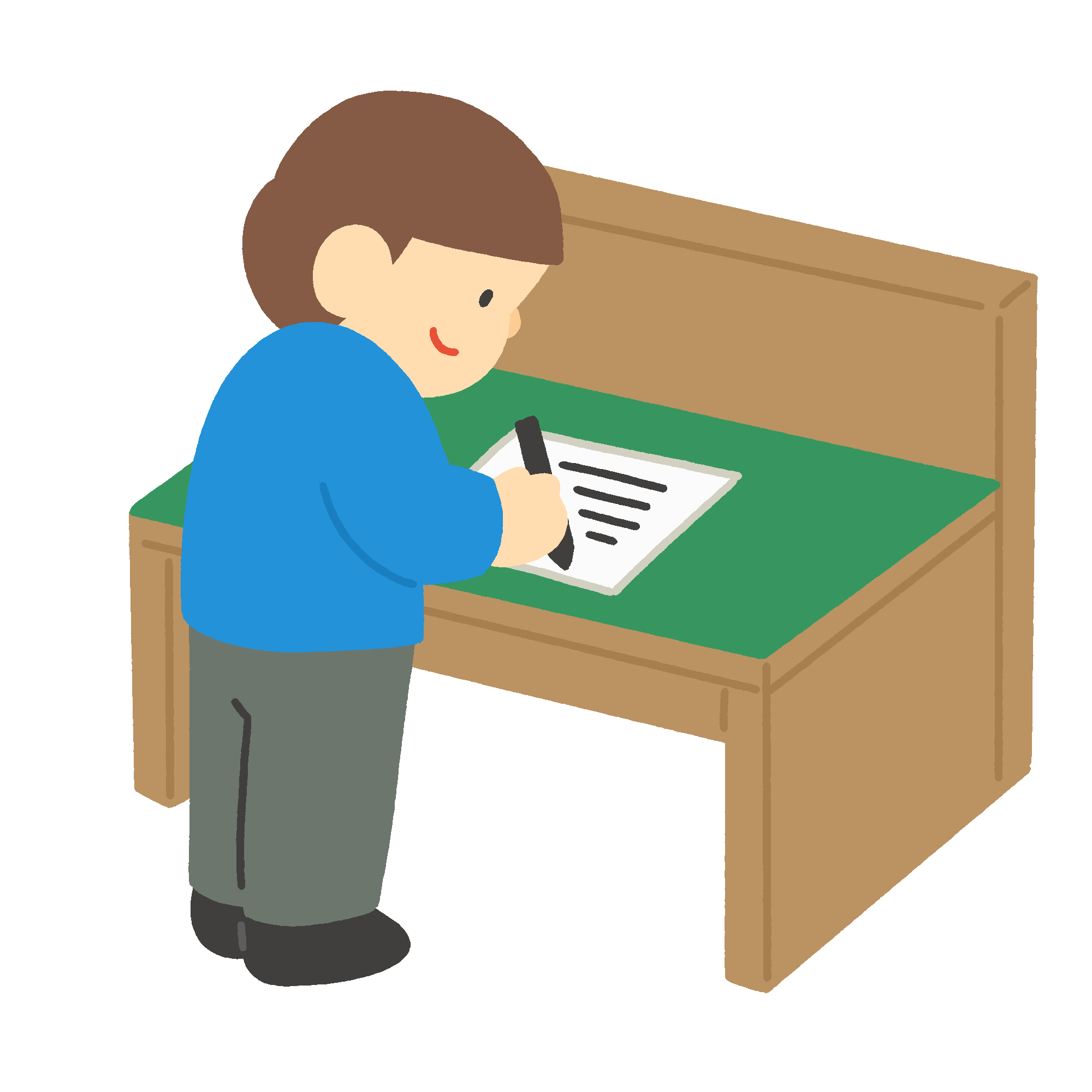 記載台で書類に記入する人物の無料イラスト素材です。役所の窓口や受付カウンター、申請手続きのご案内など、行政・公共機関の広報物に幅広くご活用いただけます。背景透過。商用利用可能です。市民サービスの案内チラシ、自治体の窓口ポスター、保険・年金の申請案内、書かない窓口など、官公庁や自治体の資料制作にも適した素材です。