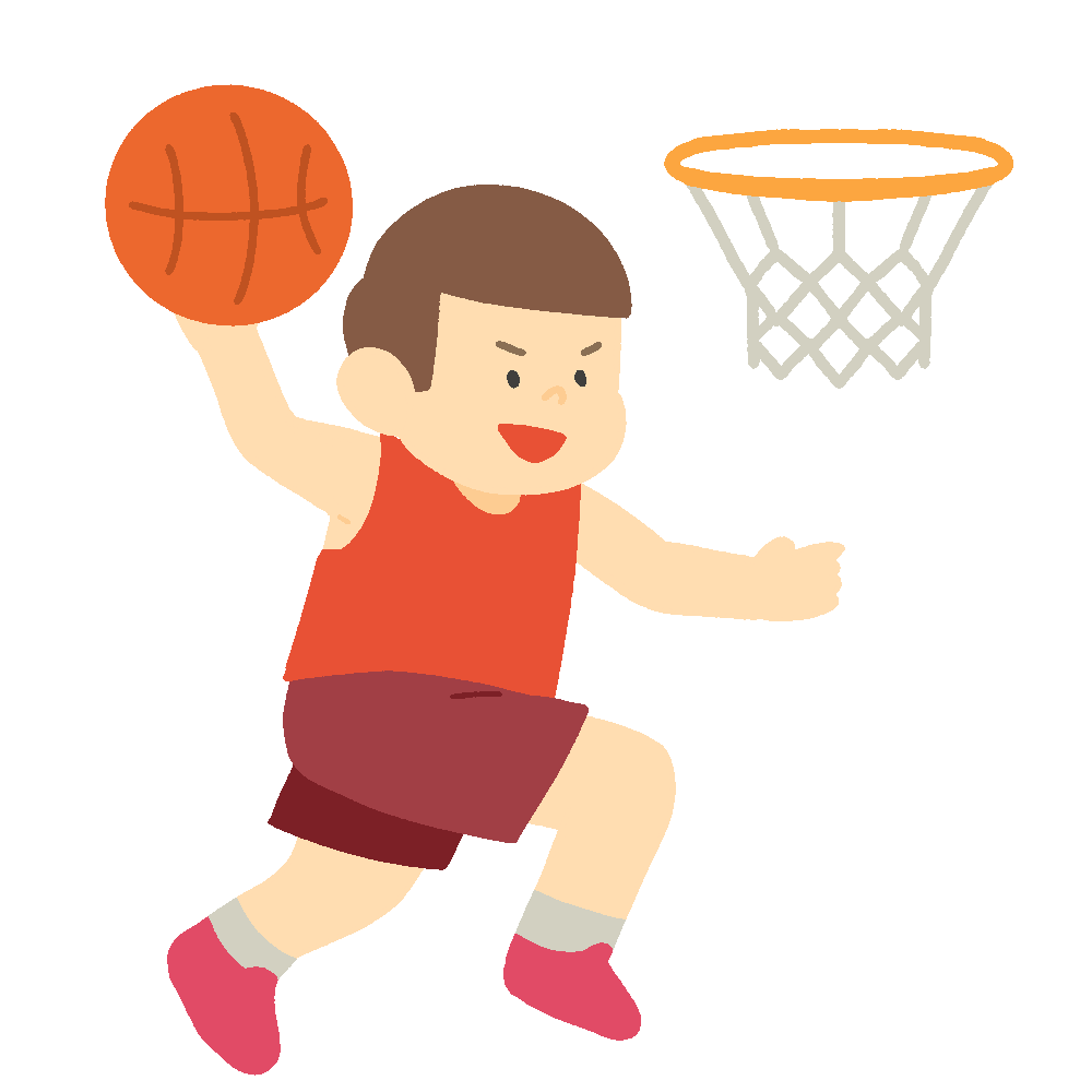 This free illustration features a male basketball player performing a slam dunk during a game. It captures the dynamic action of basketball and is ideal for school materials, sports blogs, team introductions, rule explanations, and promotional flyers. The image is provided as a transparent PNG for easy use in both digital and print designs.