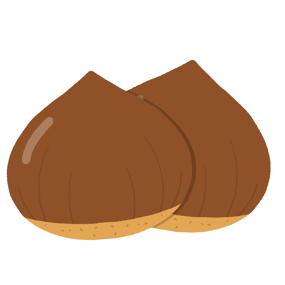 A free clipart illustration of two chestnuts, a classic seasonal food of autumn. Perfect for use in blog articles, recipe designs, food packaging, seasonal newsletters, or educational materials. Comes in PNG format with a transparent background for easy use in both print and web projects.