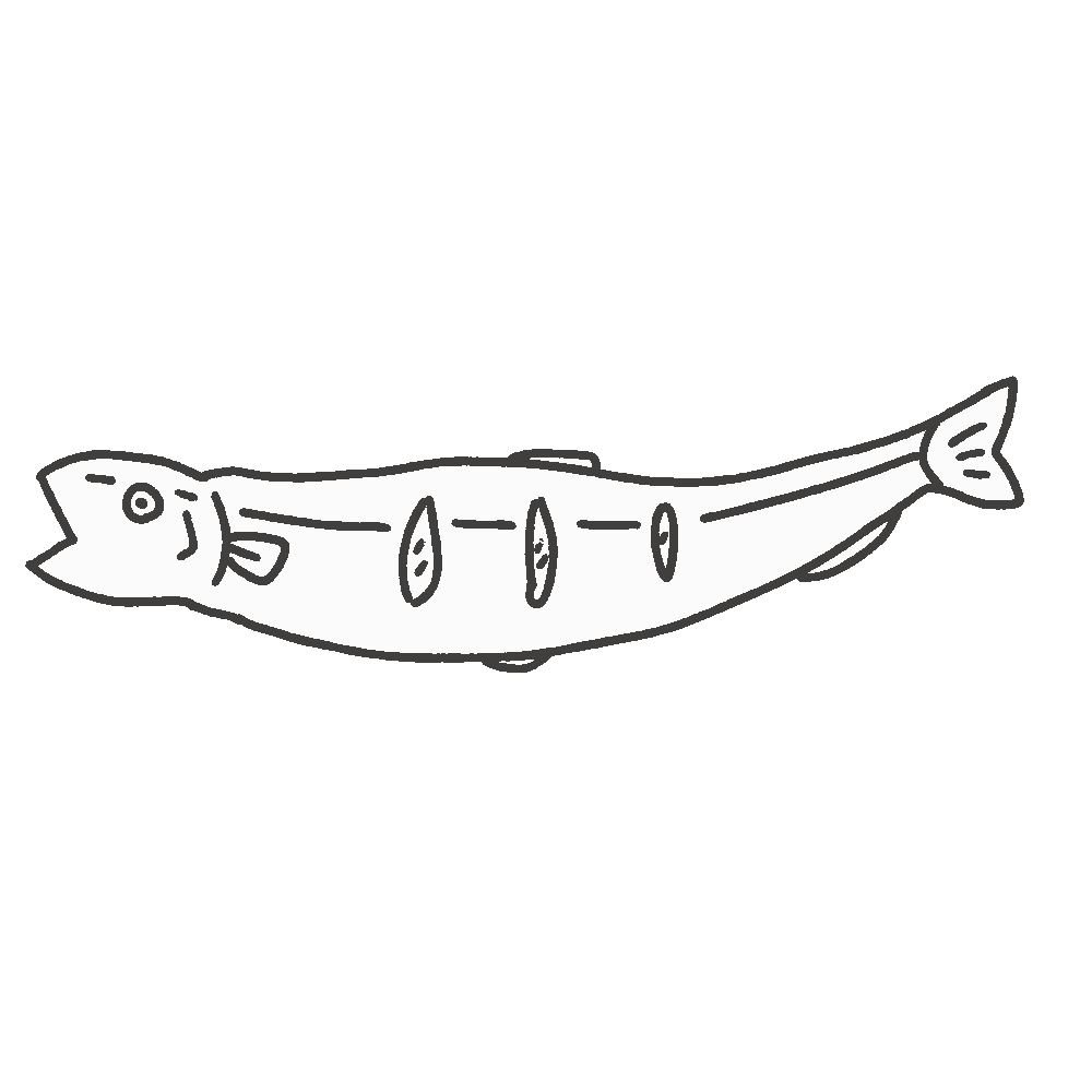 ししゃも(白黒)の無料イラスト素材(魚・線画・塗り絵・食育教材)