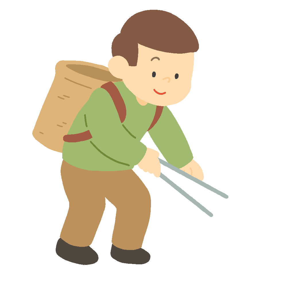 トングで栗拾いやゴミ拾いをする人の無料イラスト素材(環境美化・秋・人物イラスト)