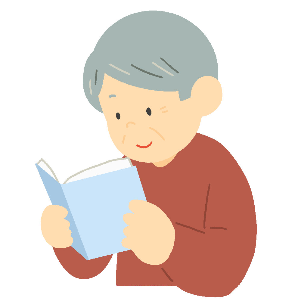 This free illustration features an elderly man quietly reading a book. Perfect for scenes such as “Autumn for Reading,” library materials, peaceful moments at home, senior education or hobbies, and content that portrays wisdom and calm. The warm expression conveys a sense of relaxation and focus.