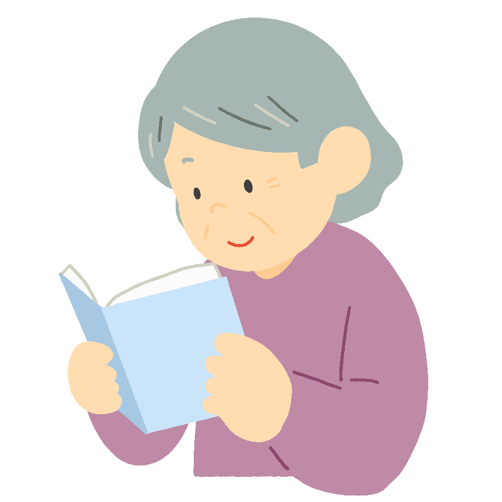 This free illustration features an elderly woman peacefully reading a book. Ideal for scenes such as autumn reading time, library use, senior hobbies, community activities, and relaxing moments at home. Her calm and gentle expression adds a warm, thoughtful touch to educational or seasonal content.