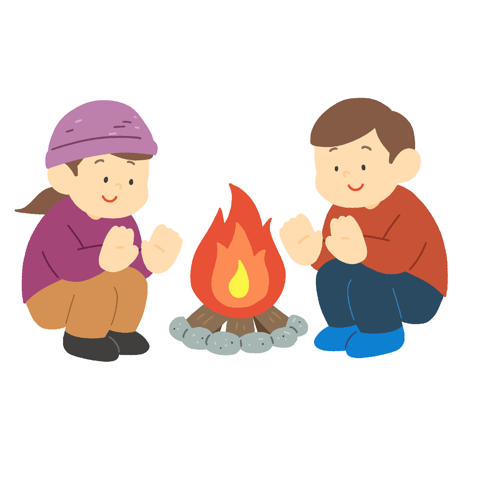 This is a free illustration of a person at a bonfire, which can be used for camping information, introduction of outdoor activities, announcement of autumn events, etc.
