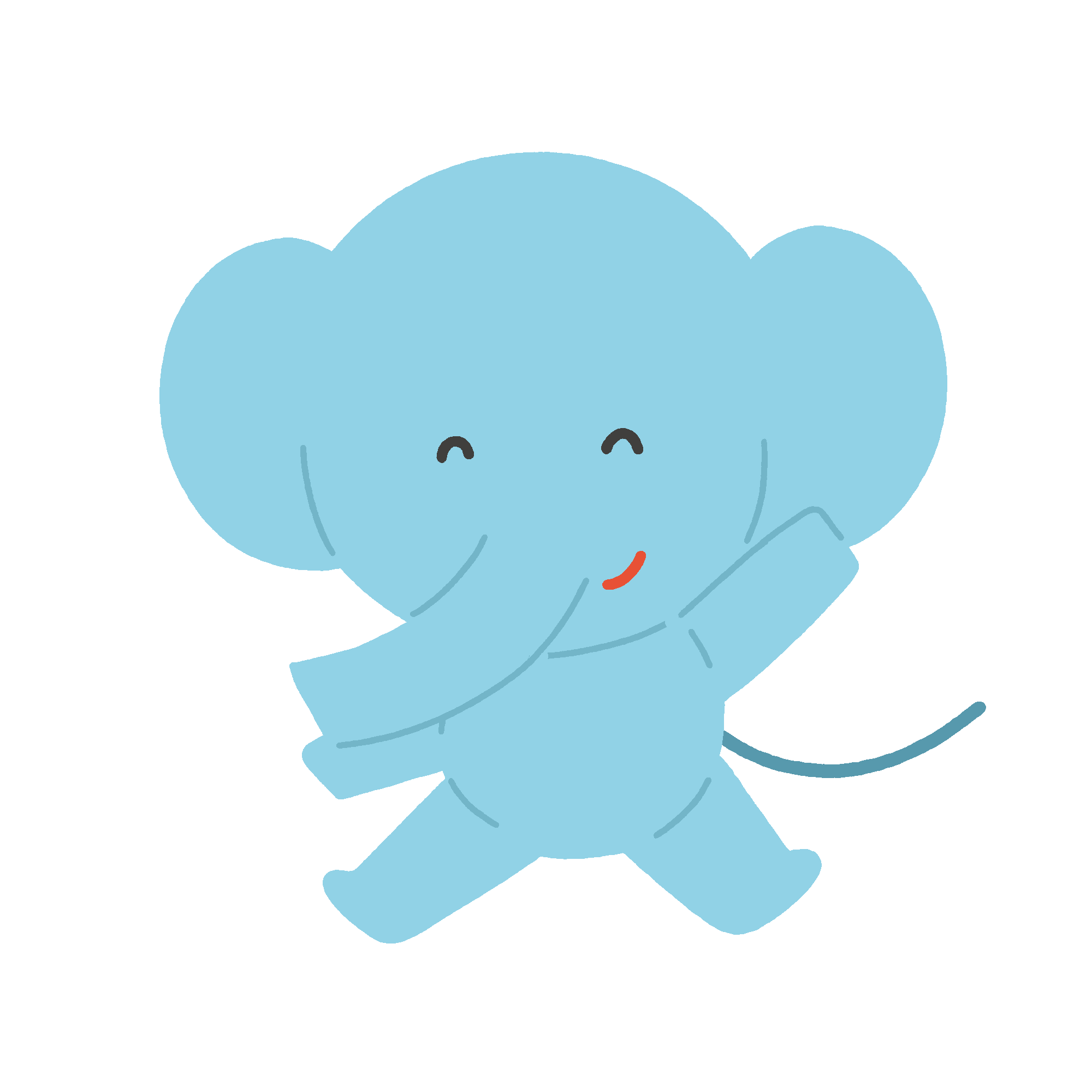This is a free clip art of a cute elephant waving its hands, which can be used for contents about animals, designs that need cute illustrations, expressions of greeting, and educational materials for children.