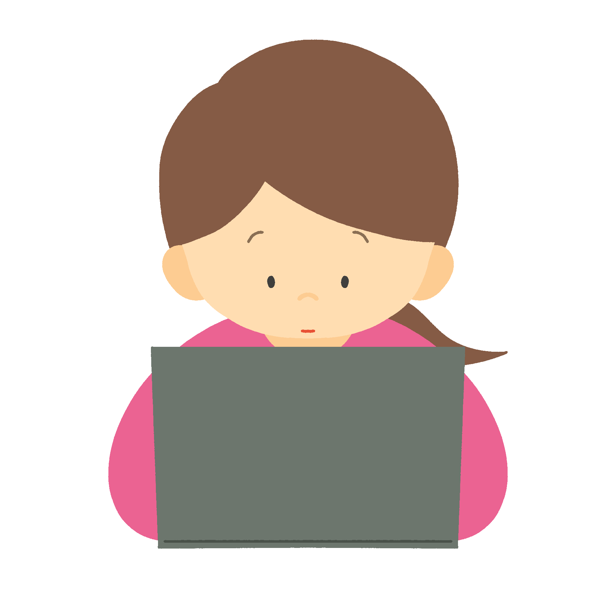 This is a free clipart image of a woman working with a laptop computer. For scenes of work in a cafe or work at home.