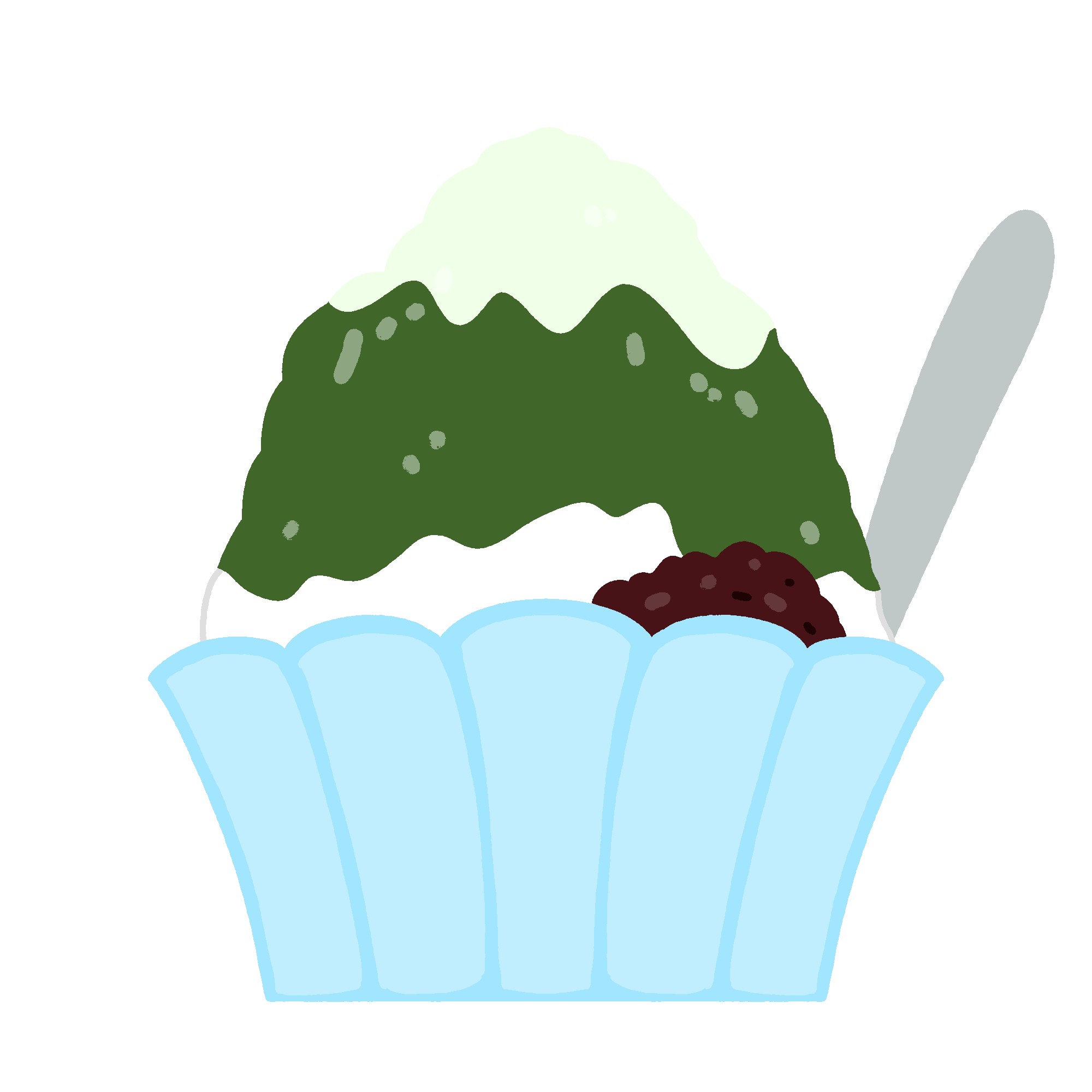 This is a free illustration of shaved ice with green tea syrup, azuki beans and plenty of milk. This clip art is suitable for summer festival scene, introduction of cool sweets, and midsummer dessert scene.