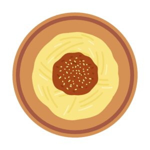 This is a free illustration of spaghetti with meat sauce in a plastic container, sold at convenience stores.