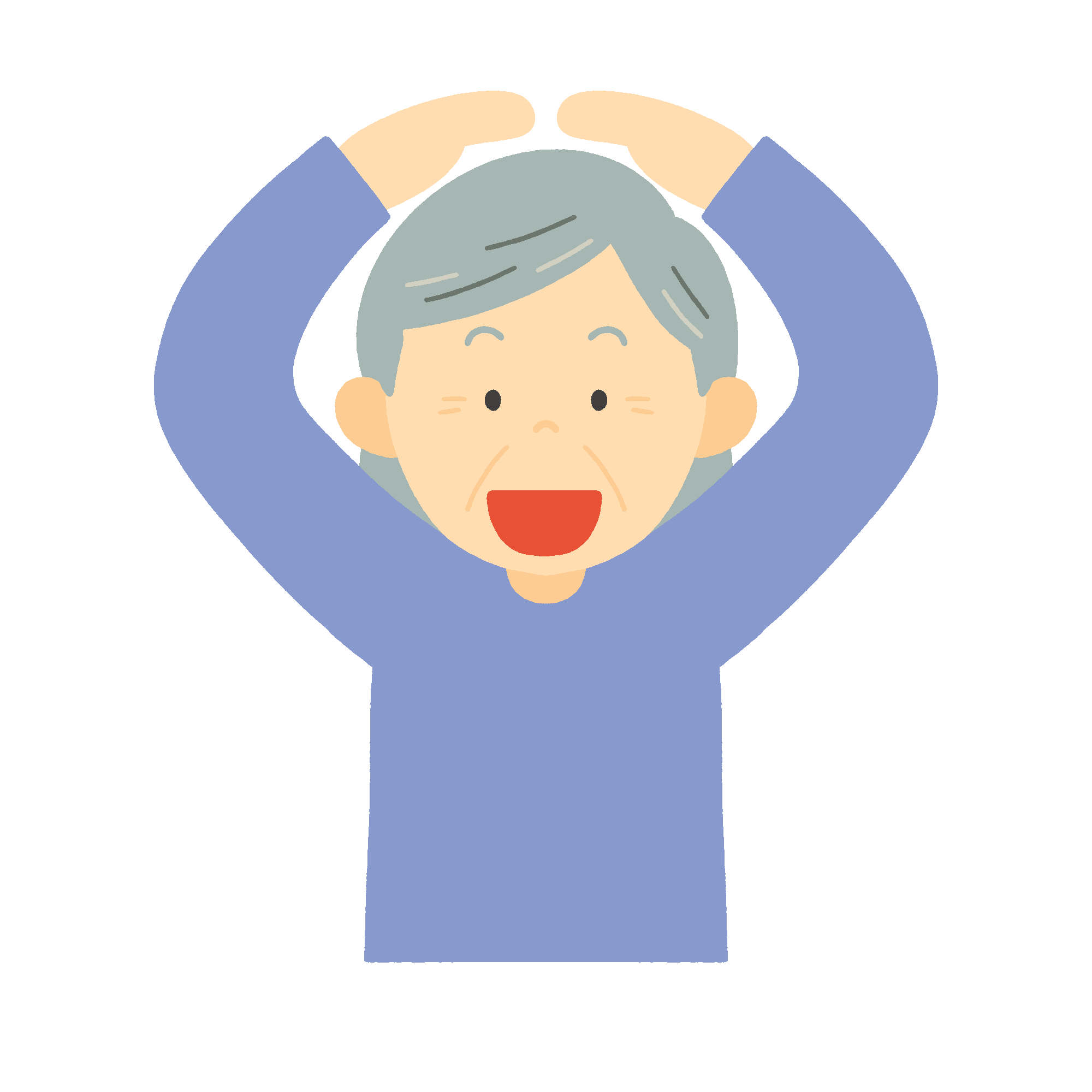 This is a free clipart picture of an old lady posing OK with both hands on her head.