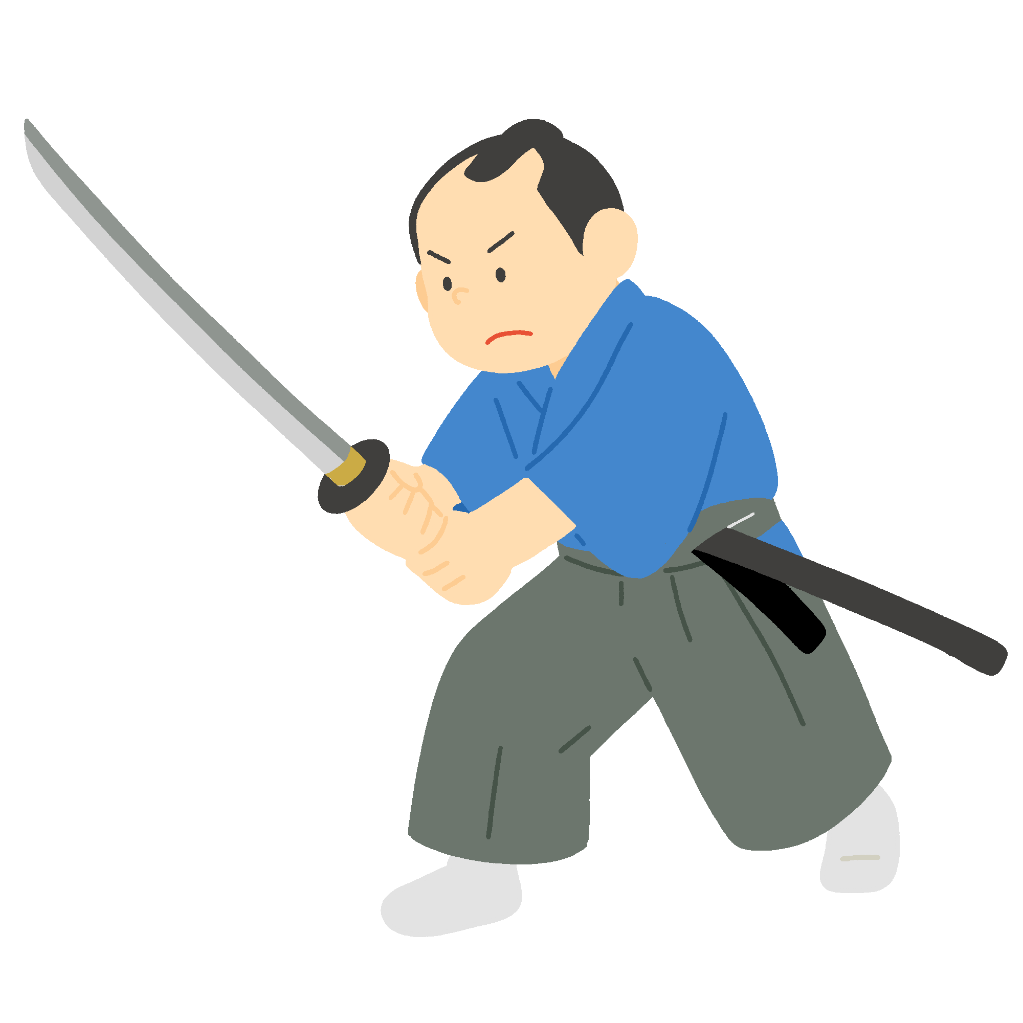This is a free illustration of a samurai holding a Japanese sword. It is suitable for period drama scenes and historical introductions.