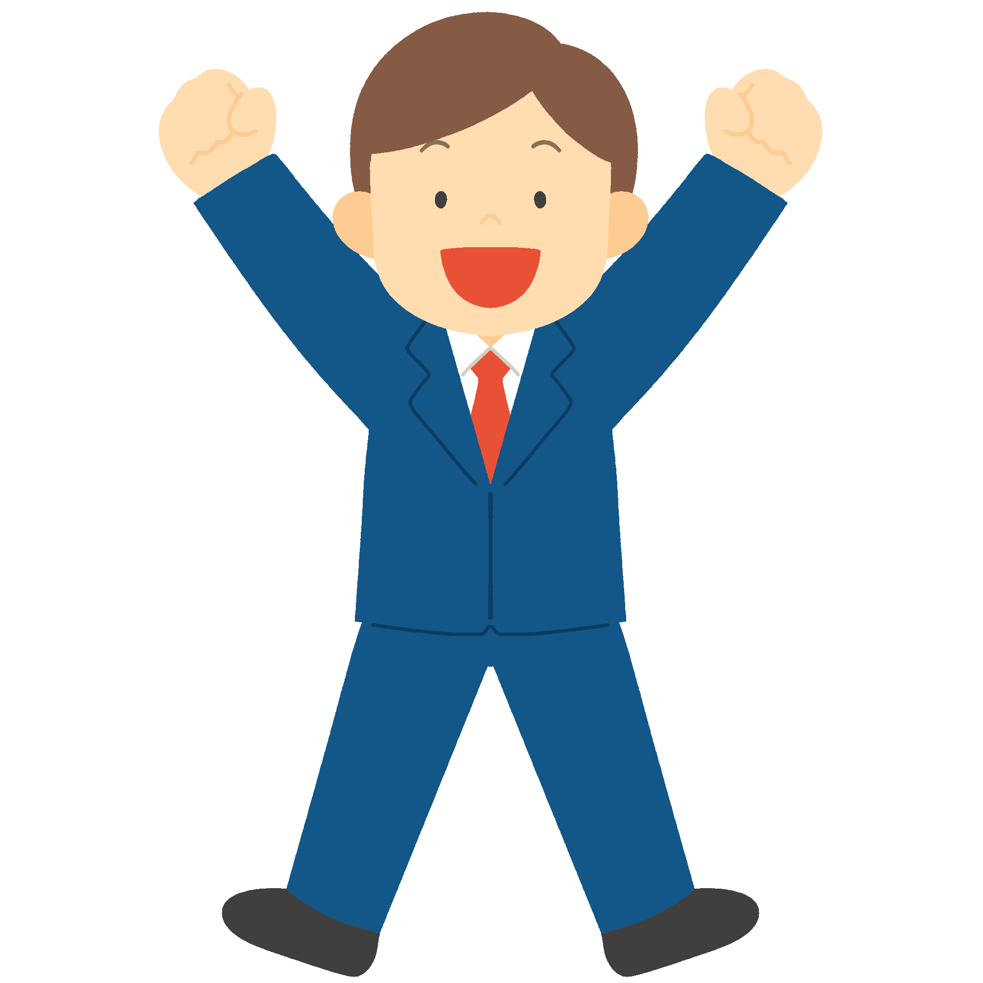 In this page, We offer the clip art of a man in a suit posing happily. Gut-posing men, happy smiling businessmen, and other scenes showing accomplishment and success (scenes such as announcing job results, passing a job interview, successful projects, etc.).