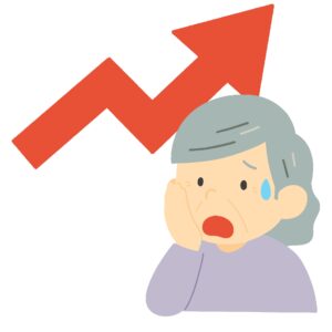 This is a free illustration of a woman who is upset about the rising prices of groceries and cost of living. For scenes of household budgeting, saving money, high prices, and explaining economic problems.