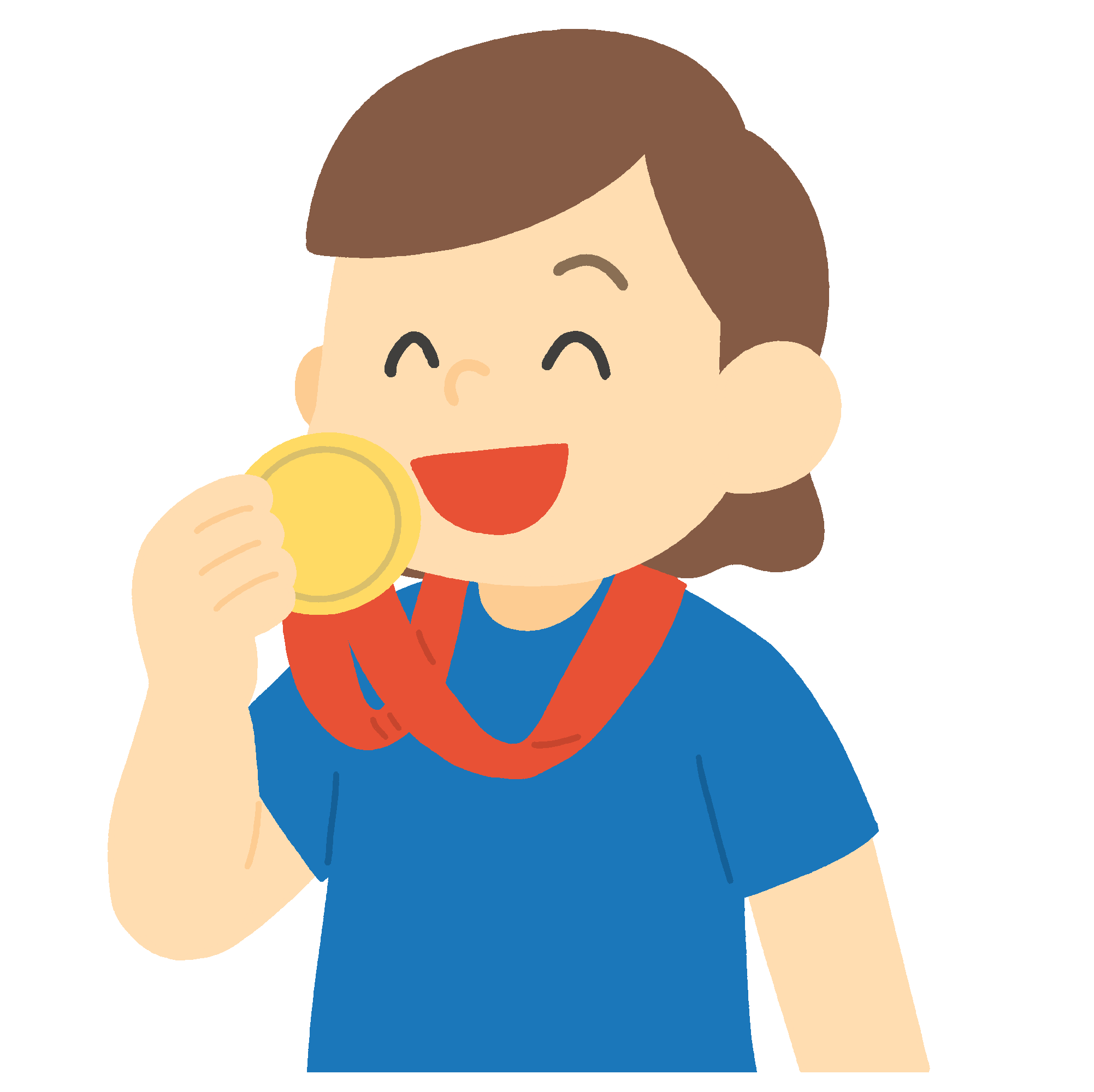 In this page, We offer the clip art of a woman biting her gold medal at a sporting event, Olympic Games, or an award ceremony.