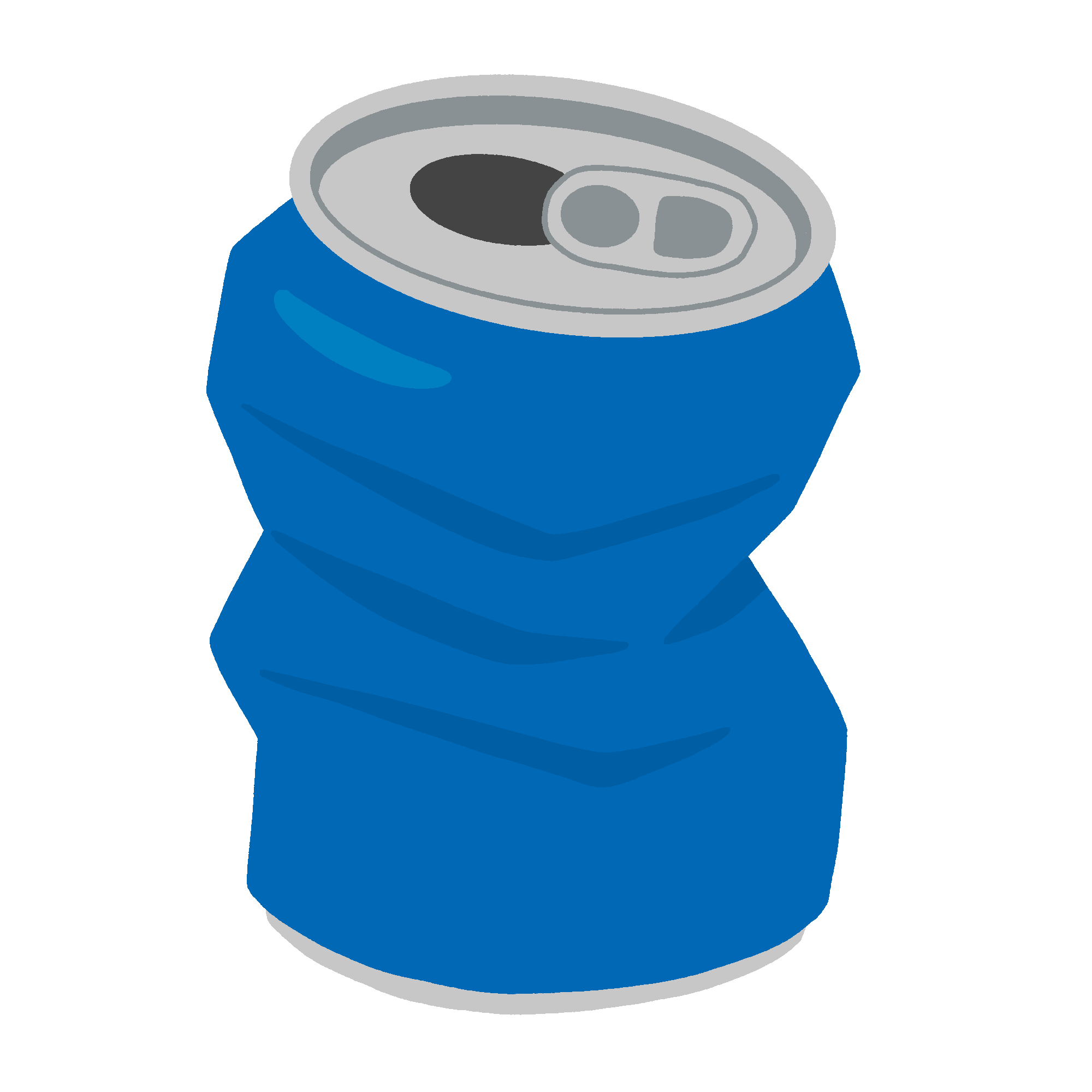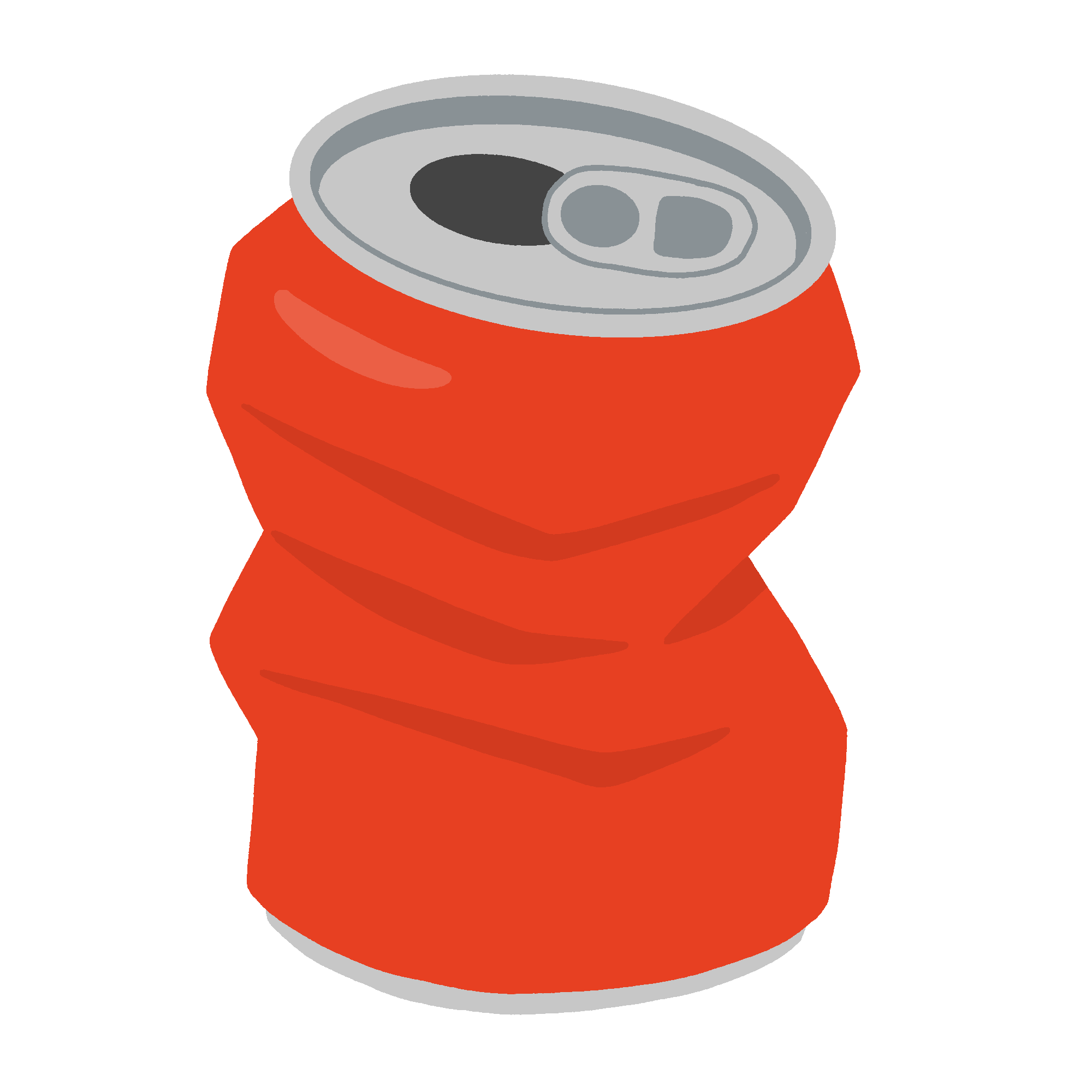 This is a free illustration of a crushed empty can(aluminum can, steel can, crushed can). In the scene of recycling activity, garbage separation, and resource collection.