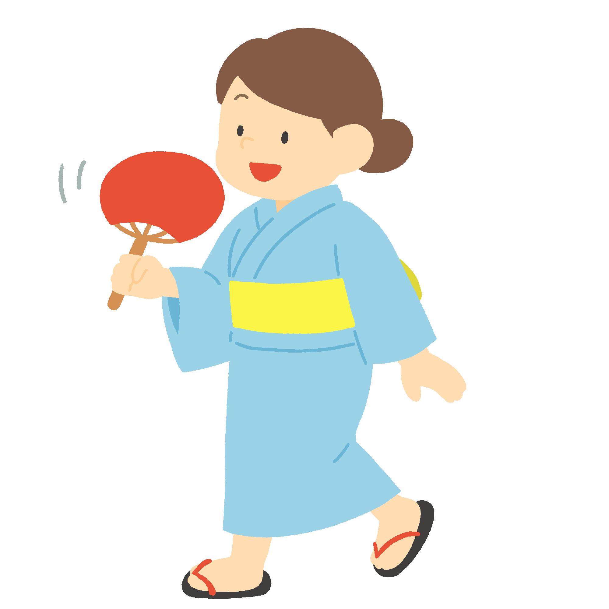 In this page, We offer the clip art of a person walking in a yukata (summer kimono) on the way home from a summer festival or a cool evening.