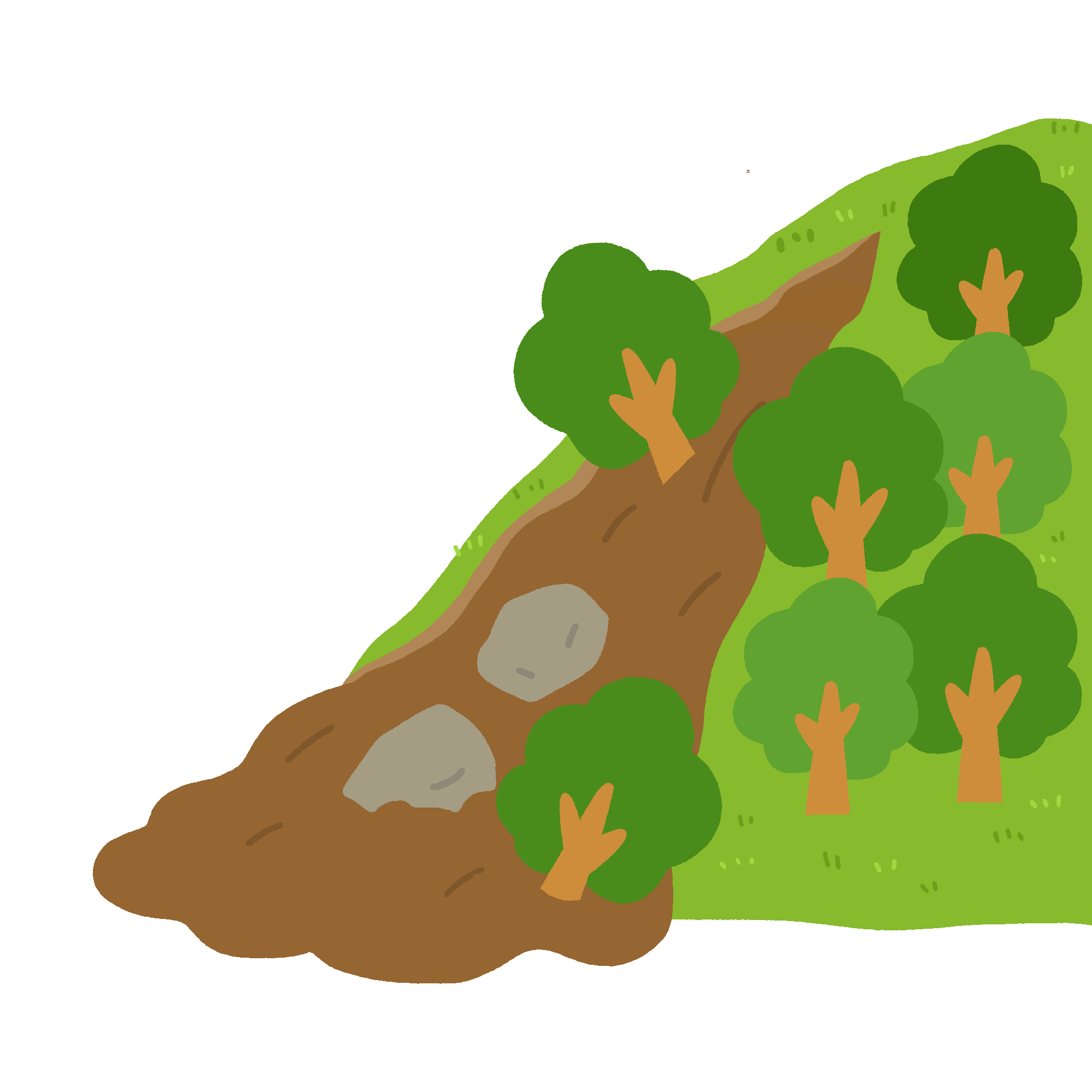 This is a free clipart of a landslide, a landslide of earth and sand falling down from a slope. For disaster prevention, disaster information, and evacuation drills.