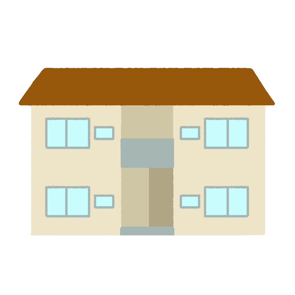 This is a free illustration of an apartment building with a brown roof. Apartment complex, apartment building.