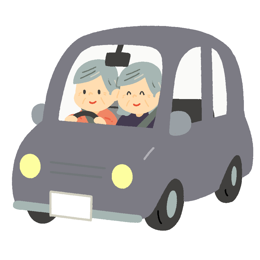 This is a free illustration of an old man driving a car and an old woman riding in the passenger seat.