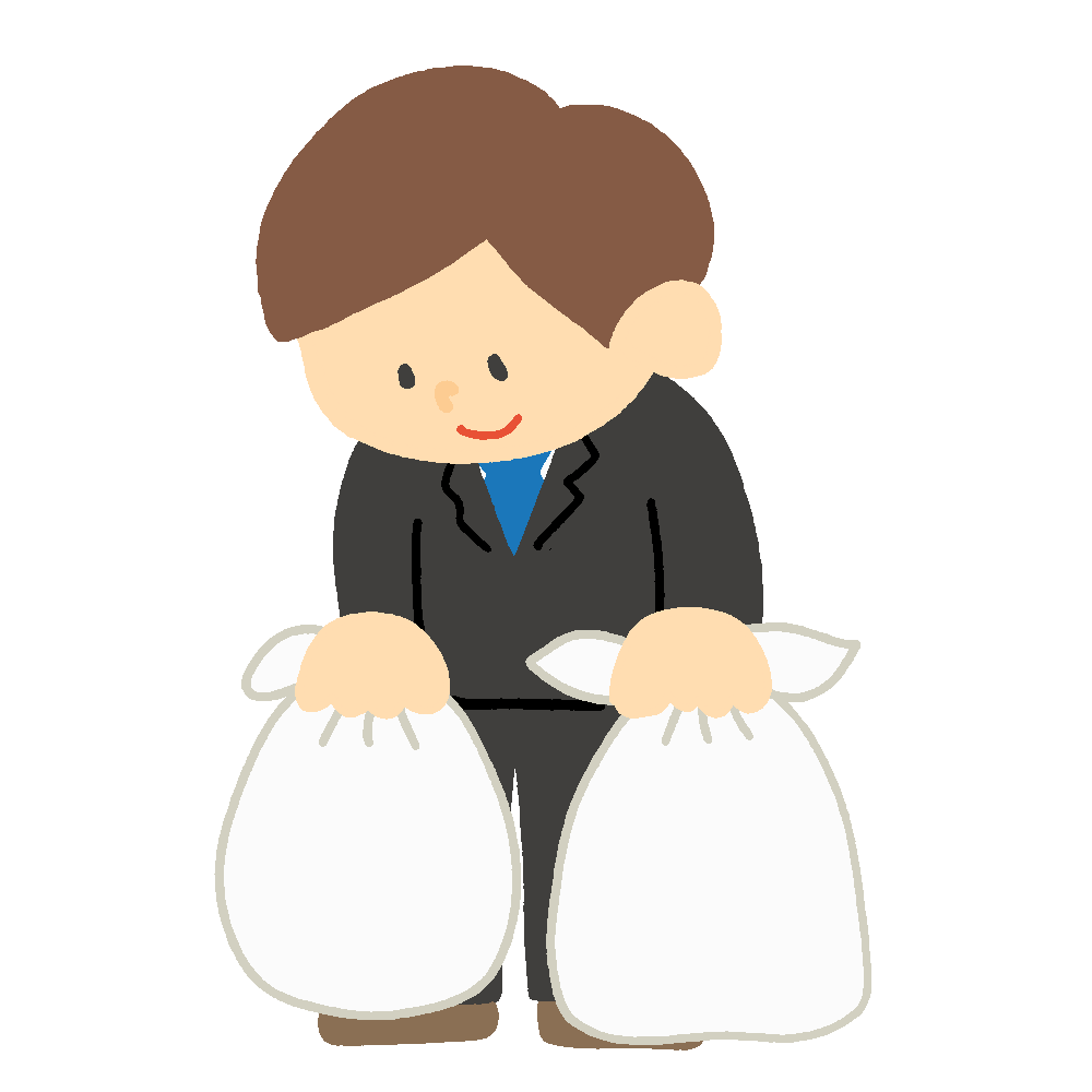 This is a free illustration of a man in a suit holding a garbage bag in his hand and trying to throw it away.