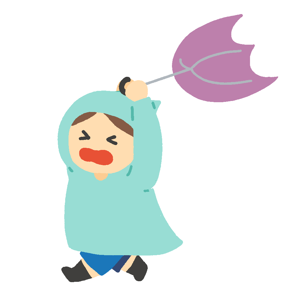 clip art of a person wearing a kappa whose umbrella is about to be turned inside out and blown away by strong winds