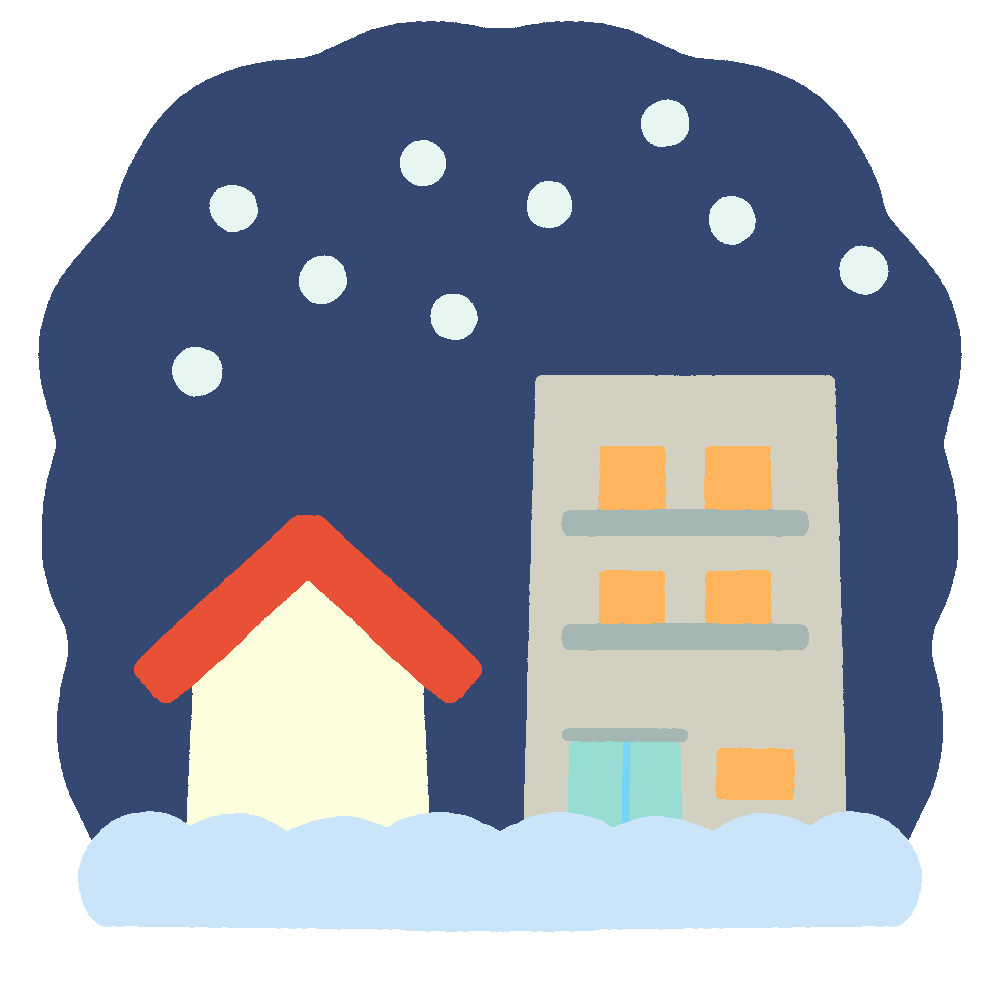 This is a free illustration where snow is beginning to accumulate on houses and apartments.