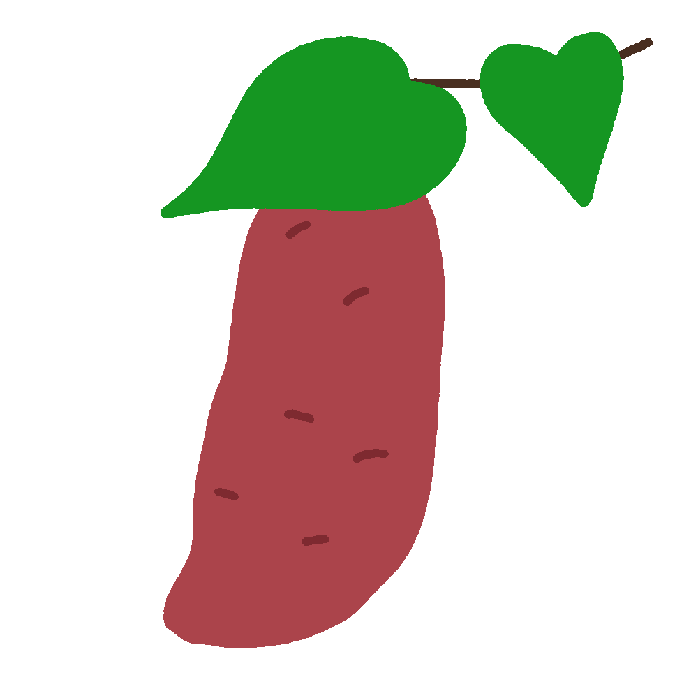 In this page, We offer the clip art of sweet potato which is connected to vine and leaves are still attached.