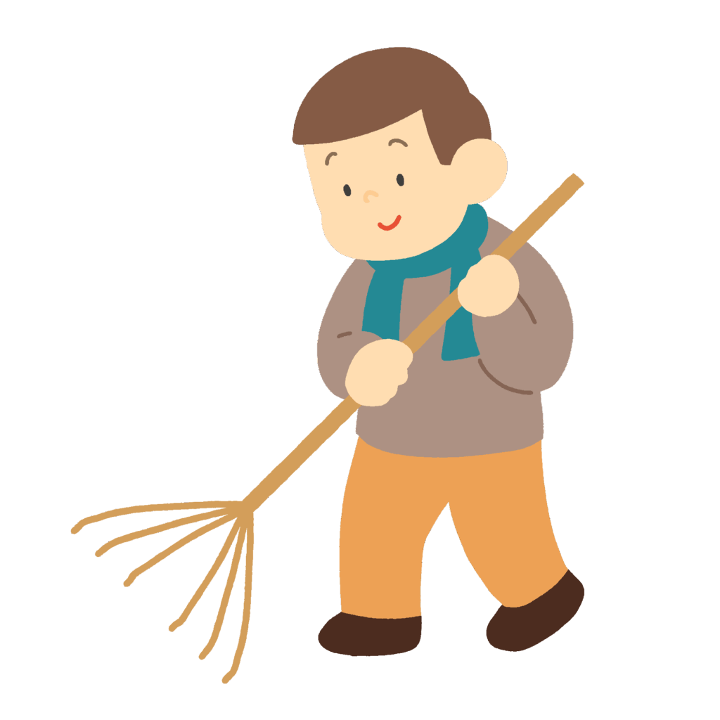 トングで栗拾いやゴミ拾いをする人のイラスト