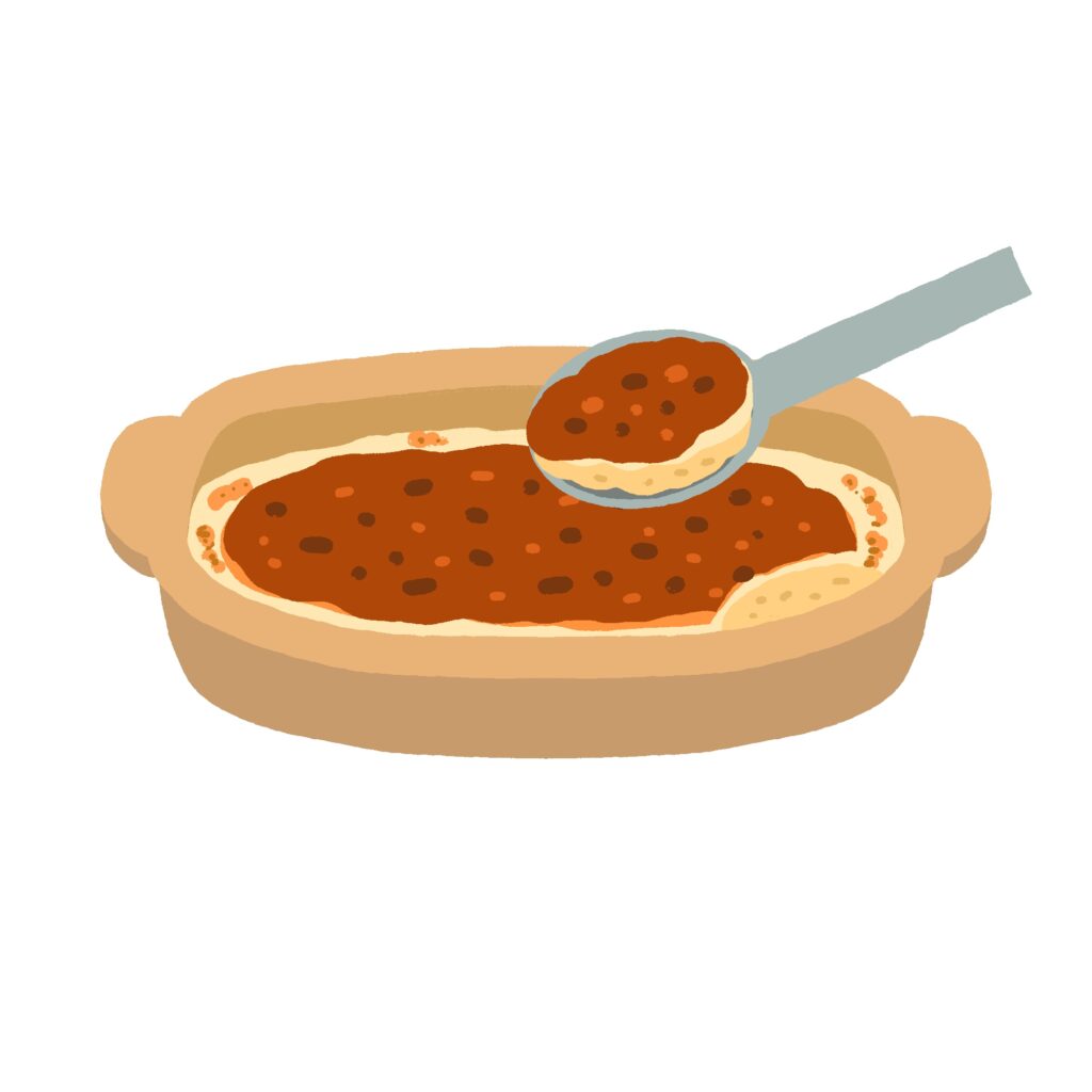 スプーンでドリアをすくうイラスト