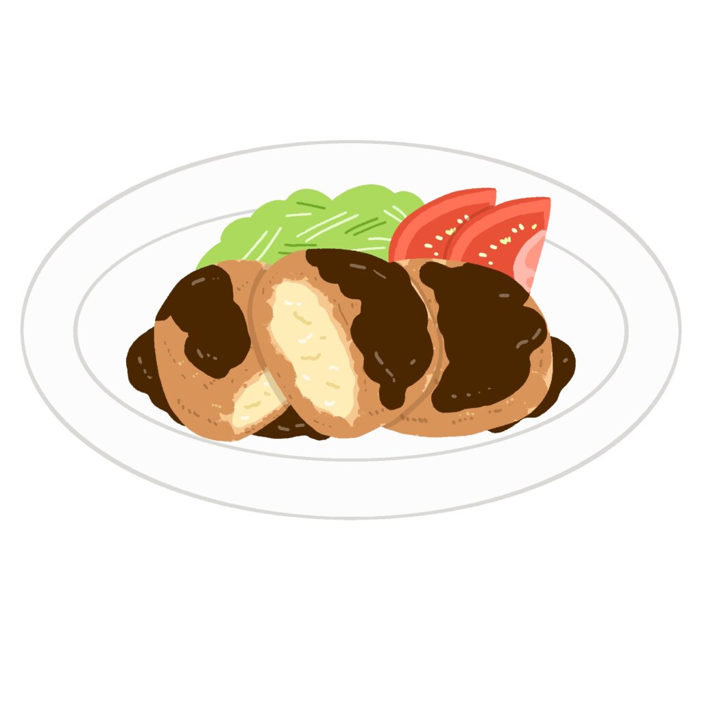 ソースがかかったコロッケのイラスト