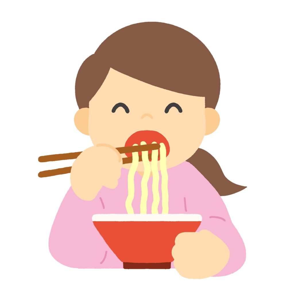 ラーメンを食べる女性のイラスト